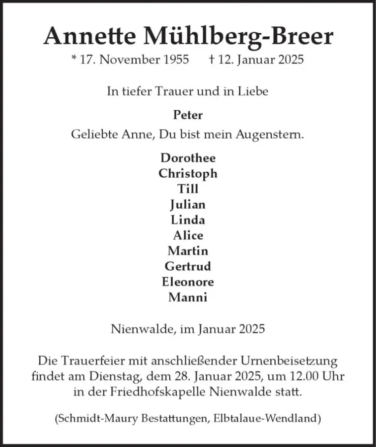 gestorben am 12. Januar 2025 in Bad Bevensen