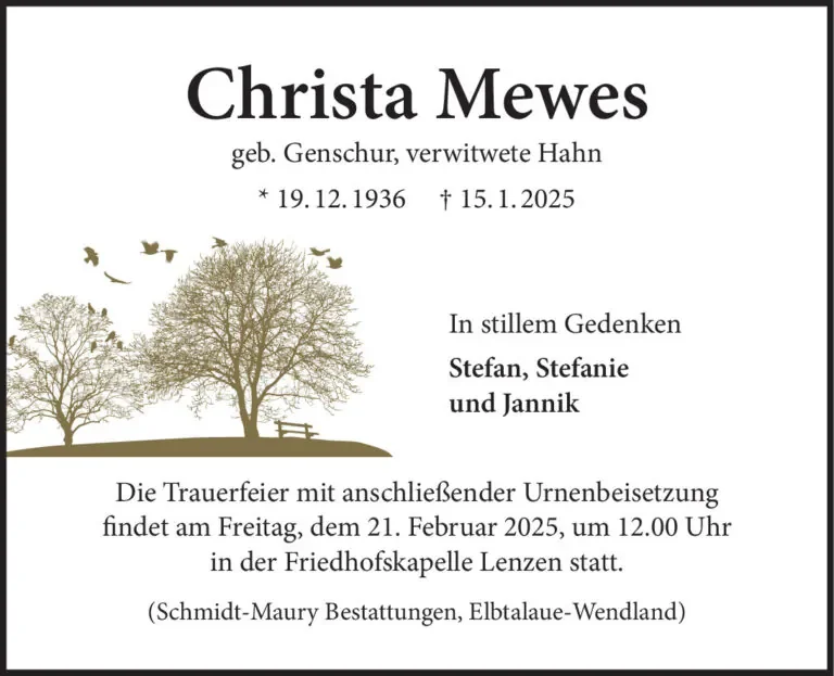 in diesen Tagen fühlen wir mit Ihnen und wünschen Ihnen von Herzen, dass Sie aus den glücklichen Erinnerungen Kraft schöpfen, um positiv in die Zukunft zu gehen. Diese Gedenkseite möge Ihnen dabei helfen, Ihre Trauer zu teilen und das Andenken gemeinsam wachzuhalten.