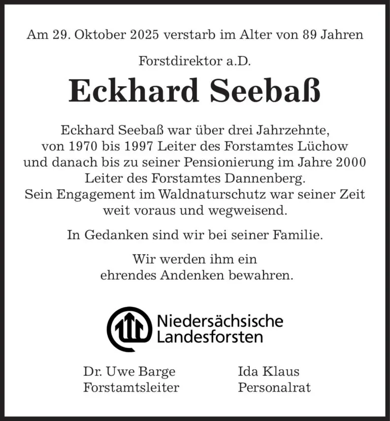 Eckhard Seebaßgestorben am 29. Oktober 2025