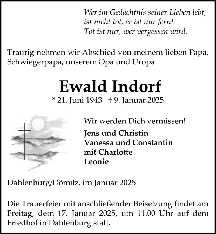 Ewald Indorfgestorben am 9. Januar 2025