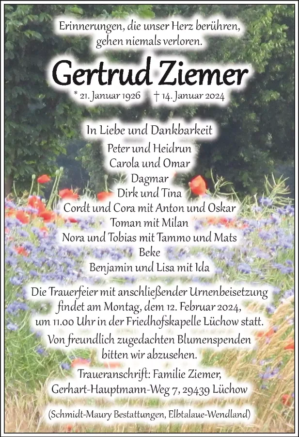 Gertruda Ziemergestorben am 14. Januar 2024