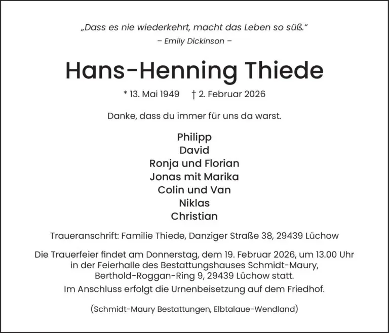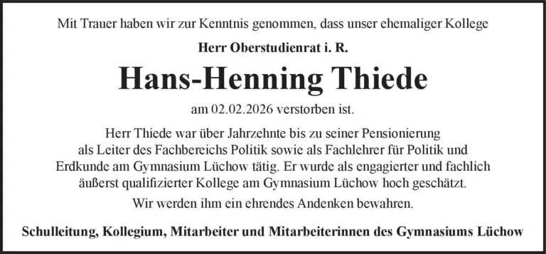 gestorben am 2. Februar 2026 in Lüchow (Wendland)