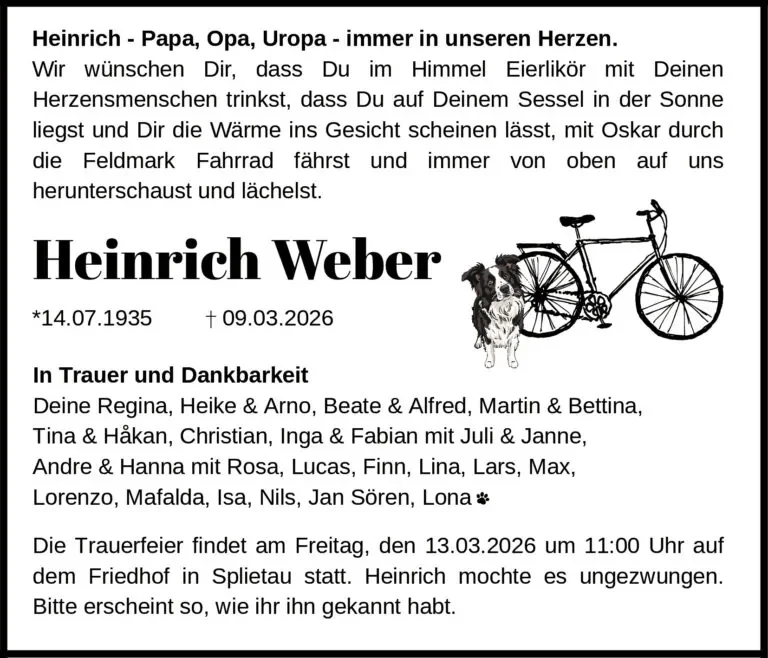 wir wünschen Ihnen für die kommende Zeit viel Kraft und dass es Ihnen gelingt, dankbar auf die positiven Erinnerungen zurückzublicken. Diese Gedenkseite möge Ihnen dabei helfen, Ihre Trauer zu teilen und das Andenken gemeinsam wachzuhalten.