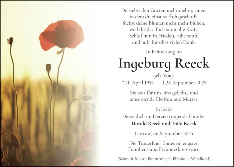 wir wünschen Ihnen für die kommende Zeit viel Kraft und dass es Ihnen gelingt, dankbar auf die positiven Erinnerungen zurückzublicken. Diese Gedenkseite möge Ihnen dabei helfen, Ihre Trauer zu teilen und das Andenken gemeinsam wachzuhalten.