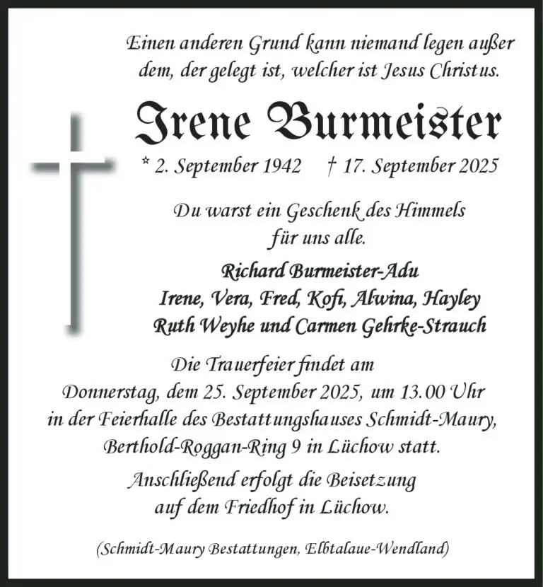 Irene Burmeistergestorben am 17. September 2025