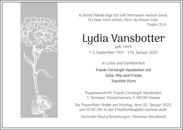 gestorben am 13. Januar 2025 in Dannenberg (Elbe)