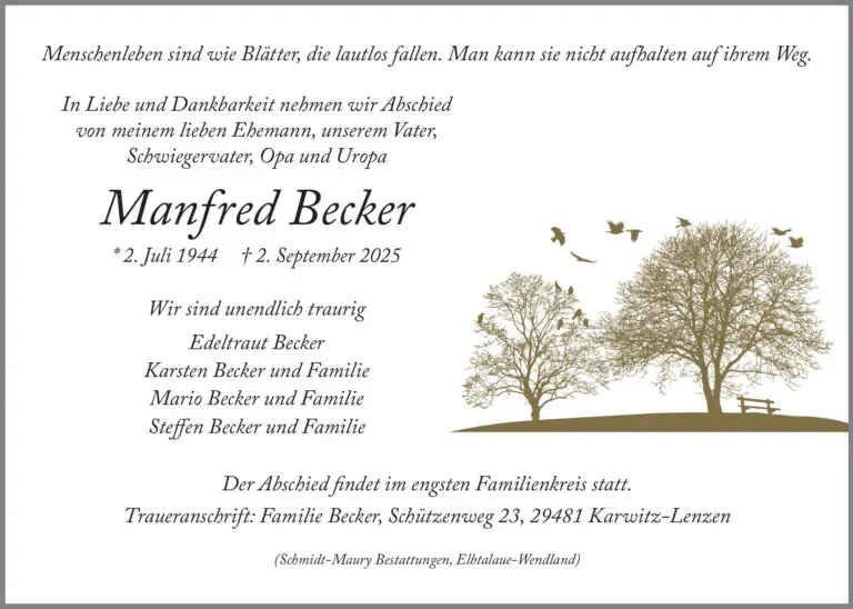 gestorben am 2. September 2025 in Karwitz-Lenzen
