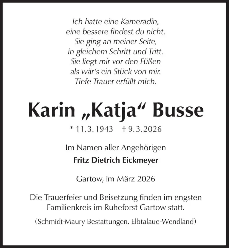 gestorben am 8. März 2026 in Gartow